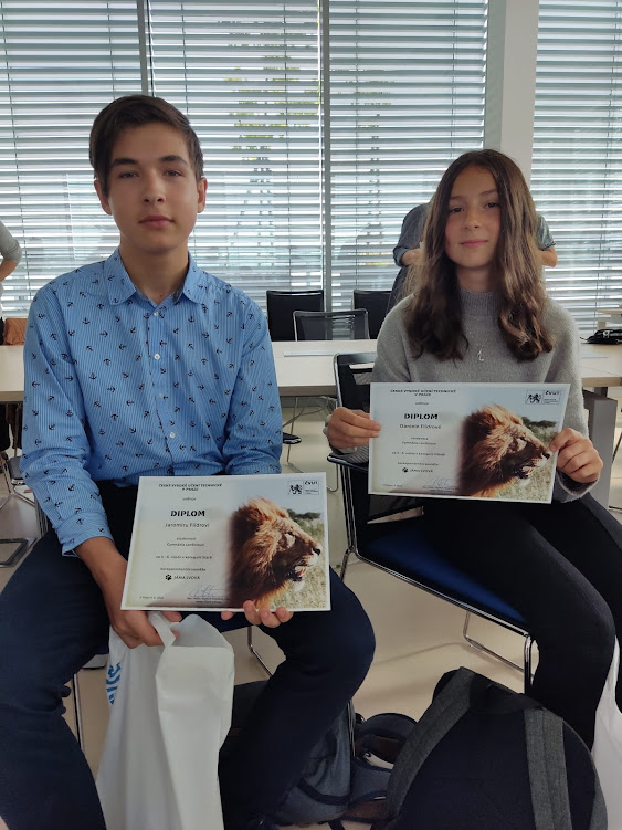 A tak se v pátek 16. září 2022 vypravili Jaromír Flídr (4. - 6. místo v kategorii starší) a Daniela Flídrová (4. - 5. místo v kategorii mladší) za doprovodu svých kamarádů a učitelského doprovodu do Prahy, kde na ně čekal celodenní program. Na rektorátu si převzali z rukou rektora diplomy a po malém občerstvení se přesunuli na Fakultu elektrotechnickou a poté na Fakultu informačních technologií, kde je čekala exkurze laboratořemi a také dobrodružná jízda páternoster výtahem.